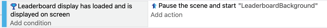 • Use the condition "Leaderboard display is loading" to trigger an action (display a text "Loading" for example)