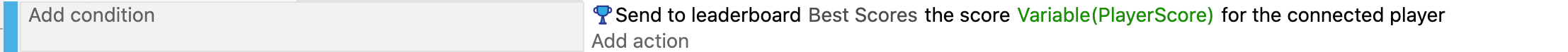• Once it is done, you can either select the leaderboard you want to send the score to, or use an expression to define the unique id of the leaderboard (if it is stored in a scene variable for instance).